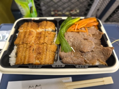 鰻とすき焼きの欲張りコラボ弁当を熱々でいただけましたー😁